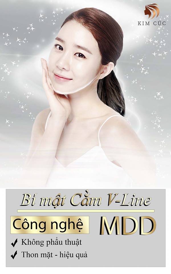 BẬT MÍ NHỮNG BÍ MẬT CẰM V-LINE – TẠM BIỆT CẰM NỌNG Nhiều bạn hay than phiền rằng “ tại sao cằm mình lại nọng thế?” ngại rụt cổ vào là thấy ngay nọng , nhìn người ta cằm nhọn , mặt cân đối biết bao nhiêu… GIẢI PHÁP GIÚP BẠN SỞ HỮU CHIẾC CẰM V-LINE MƠ ƯỚC BẰNG CÔNG NGHỆ MDD Công nghệ MDD là gì ? MDD là công nghệ sử dụng sức nóng lên đến 67.5 độ C giúp đi sâu là 3-5cm đốt cháy mở thừa trên cơ thể, tằng cường tái tạo collagen và xóa tan vùng da bị nhão. Công nghệ MDD có thể giảm nọng mặt? Với sự tiên tiến của công nghệ, việc xóa mỡ nọng trên mặt là không thành vấn đề. Quy trình xóa nọng để có một chiếc cằm V-line: Bước 1: Tác động nhiệt đến vùng da mỡ làm đốt cháy lượng mỡ dư thừa. Bước 2: Kích thích trao đổi chất và oxy cho da đào thải mỡ, ngăn ngừa tích nước. Bước 3: Tái tạo vùng da cung cấp độ ẩm bằng tinh dầu. Với chất lượng dịch đảm bảo an toàn và hài lòng với khách hàng , Kim Cúc xin cam kết sẽ mang đến cho bạn một khuôn cằm thon gọn ưng ý nhất. KIM CÚC ĐỒNG HÀNH CÙNG SẮC ĐẸP CỦA BẠN THẨM MỸ KIM CÚC Đ/C :10 Công chúa Ngọc Hân, P13, Q 11 ( đối diện Parson Lê Đại Hành). ĐT : 08 3962 3969.Bác sĩ chúng tôi :0917169102