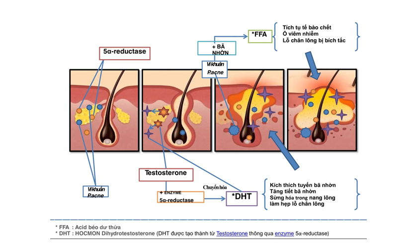 - Tăng sản xuất tuyến bã.