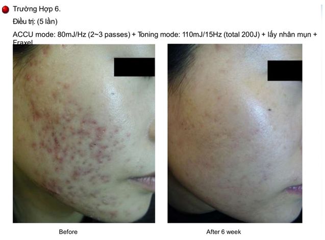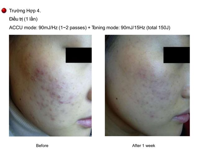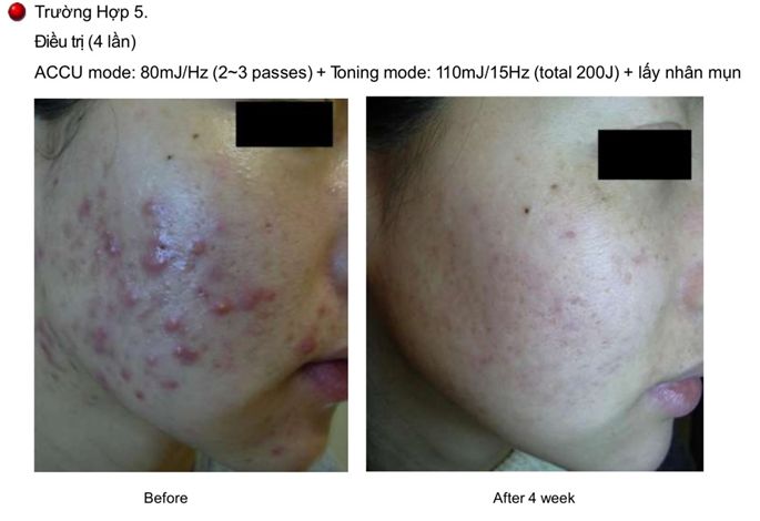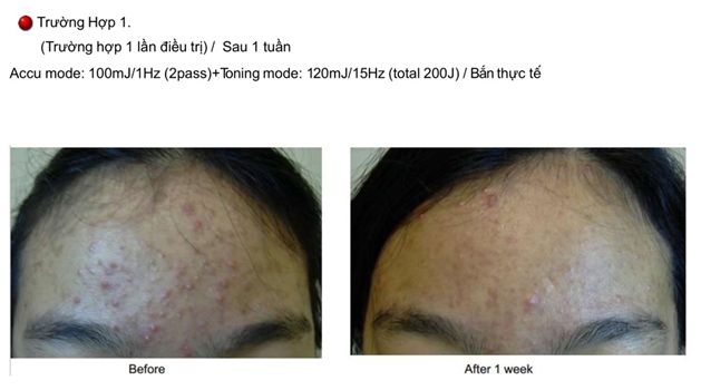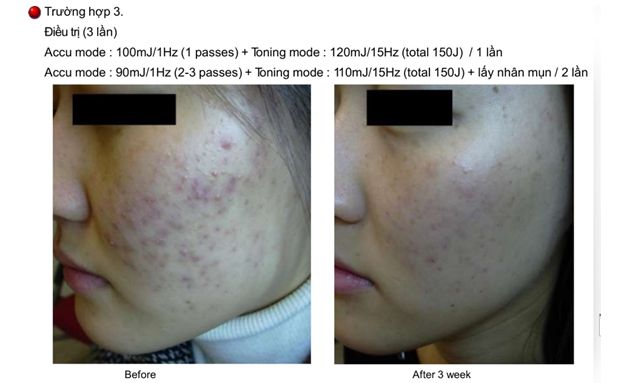- Tia Laser thâm nhập vào lớp hạ bì, cung cấp năng lượng nhiệt vào tuyến bã nhờn.