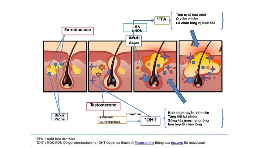 - Tăng sản xuất tuyến bã.